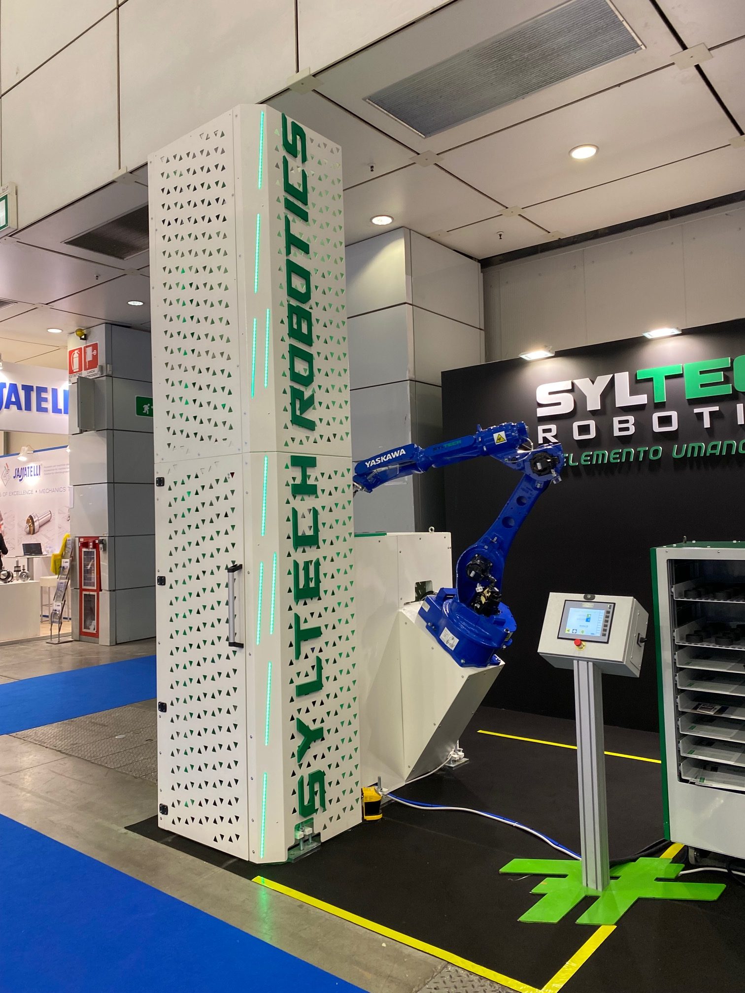 Può essere equipaggiata con robot antropomorfo a scelta tra marche FANUC, Yaskawa, KUKA, Hiwin dei quali Syltech è integratore autorizzato e certificato.